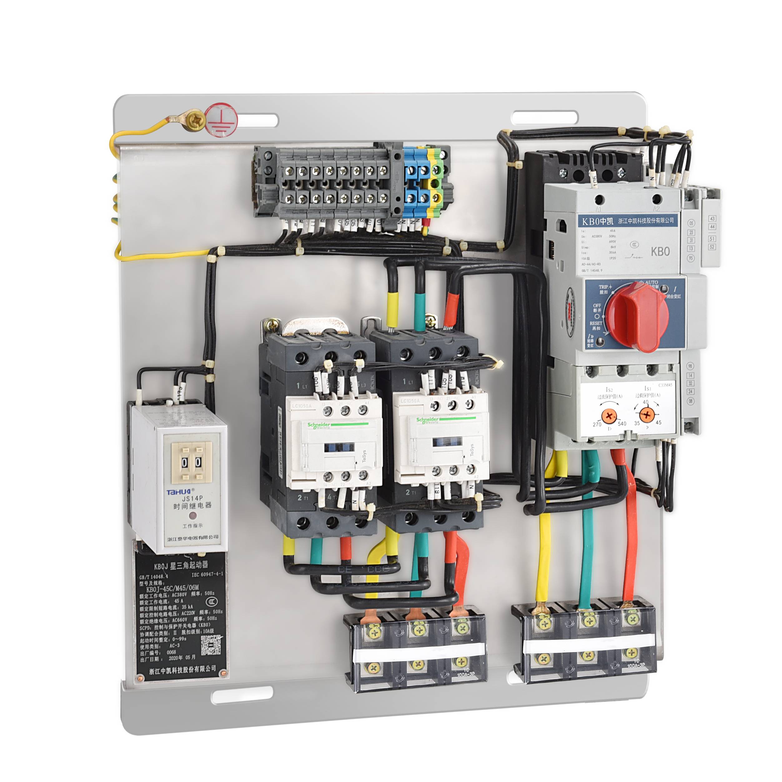 以KB0作為主開關(guān),與接觸器、時(shí)間繼電器、電氣聯(lián)鎖等附件組合,構(gòu)成Y-△減壓起動(dòng)器成套單元KB0J(以KB0-F消防型產(chǎn)品作為主開關(guān),可構(gòu)成消防型Y-△減壓起動(dòng)器成套單元KB0J-F)可實(shí)現(xiàn)110kW及以下的電動(dòng)機(jī)的Y-△減壓起動(dòng)控制與保護(hù)。