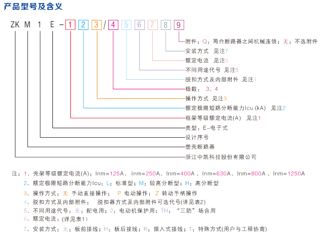 ZKM1E電子式塑殼斷路器具有三段保護動作電流、動作時間選擇。具有“預報警”指示。大電流瞬時脫扣功能,當斷路器閉合時或在運行時,遇短路大電流(≥20Inm),斷路器由電磁脫扣機構直接脫扣;安裝具有互換性,外形尺寸與ZKM1系列塑殼斷路器規格相同,按產品極數分為三極與四極。接線方式分為板前接線、板后接線、插入式板前接線、插入式板后接線、抽出式接線五種;斷路器分帶附件和不帶附件兩種。
