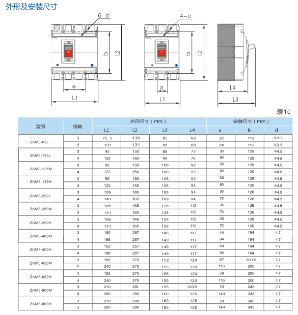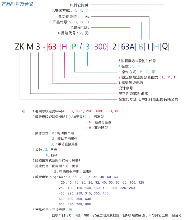 ZKM3 系列塑料外殼式斷路器(以下簡稱斷路器),其額定絕緣電壓為800V,適用于交流50Hz,額定工作電壓690V及以下,額定工作電流至800A的電路中作不頻繁轉換及電動機不頻繁起動(ZKM3-800無電動機保護型)之用。
